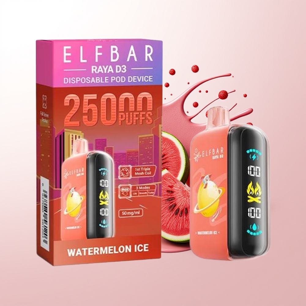 ELF BAR RAYA D3 25000 Puffs Watermelon Ice Disposable Vape Rechargeable 850mAh 23ml 5% Type-C