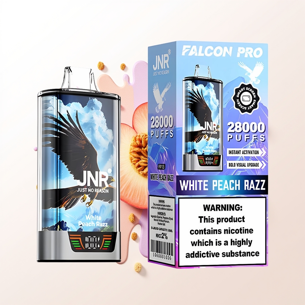 JNR Falcon Pro 28000 30ml Dual Mesh White Peach Razz MTL Disposable Vape