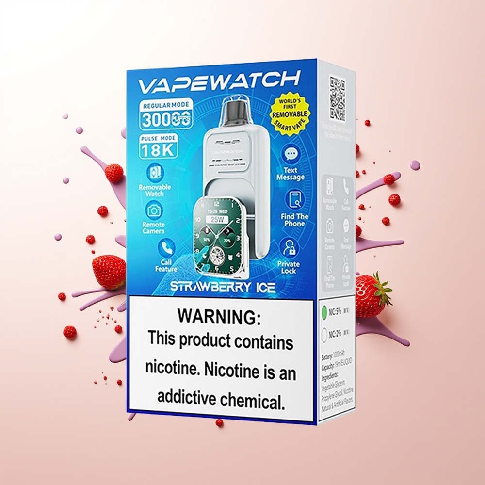 JNR VapeWatch 30000 Puffs Dual Mesh Quick Charge Strawberry Ice Disposable Vape