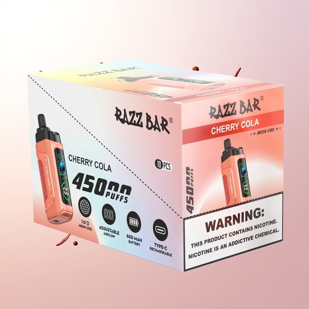 The Razz Bar 45000 Puffs Disposable Vape stands out with its industry-leading puff count, making it ideal for Australia Bulk Buy customers seeking cost-effective solutions. The 1.0 Ohm Mesh Coil ensures even heating and intensified flavor, while the Adjustable Airflow allows vapers to fine-tune their experience. Powered by a 650mAh Battery and featuring Type-C Rechargeable technology, this device guarantees durability and convenience. With a 20mg/ml Nicotine Strength, users can enjoy a smooth yet potent nicotine hit. Upgrade your vaping game with the Razz Bar 45000 Puffs today!