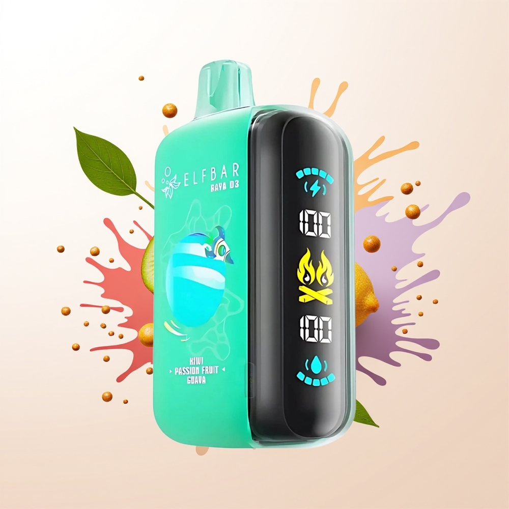 ELF BAR RAYA D3 25000 Puffs Kiwi Passion Fruit Guava Rechargeable 23ml 5% Type-C