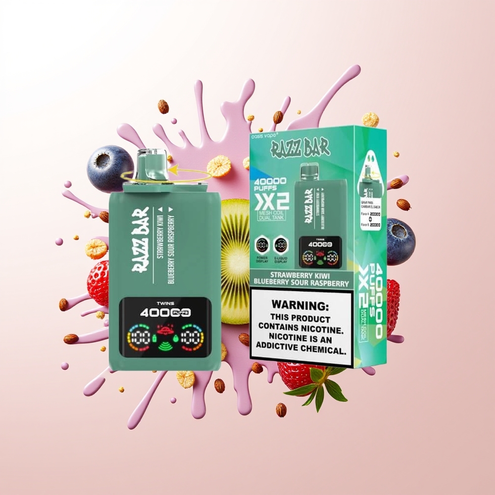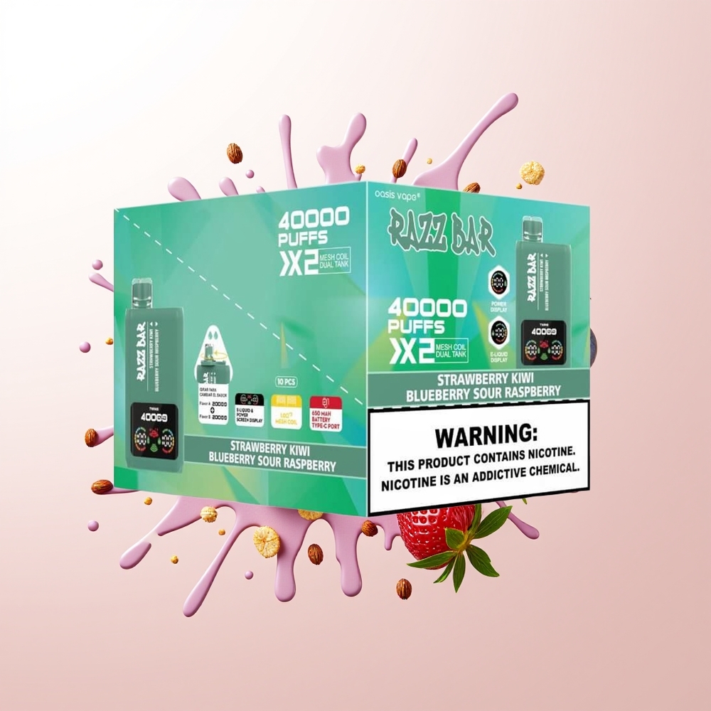 Razz Bar 40000 Puffs Disposable Vape Strawberry Kiwi Blueberry Sour Raspberry with Power Screen Display 1.0Ohm Mesh Coil 650mAh Battery