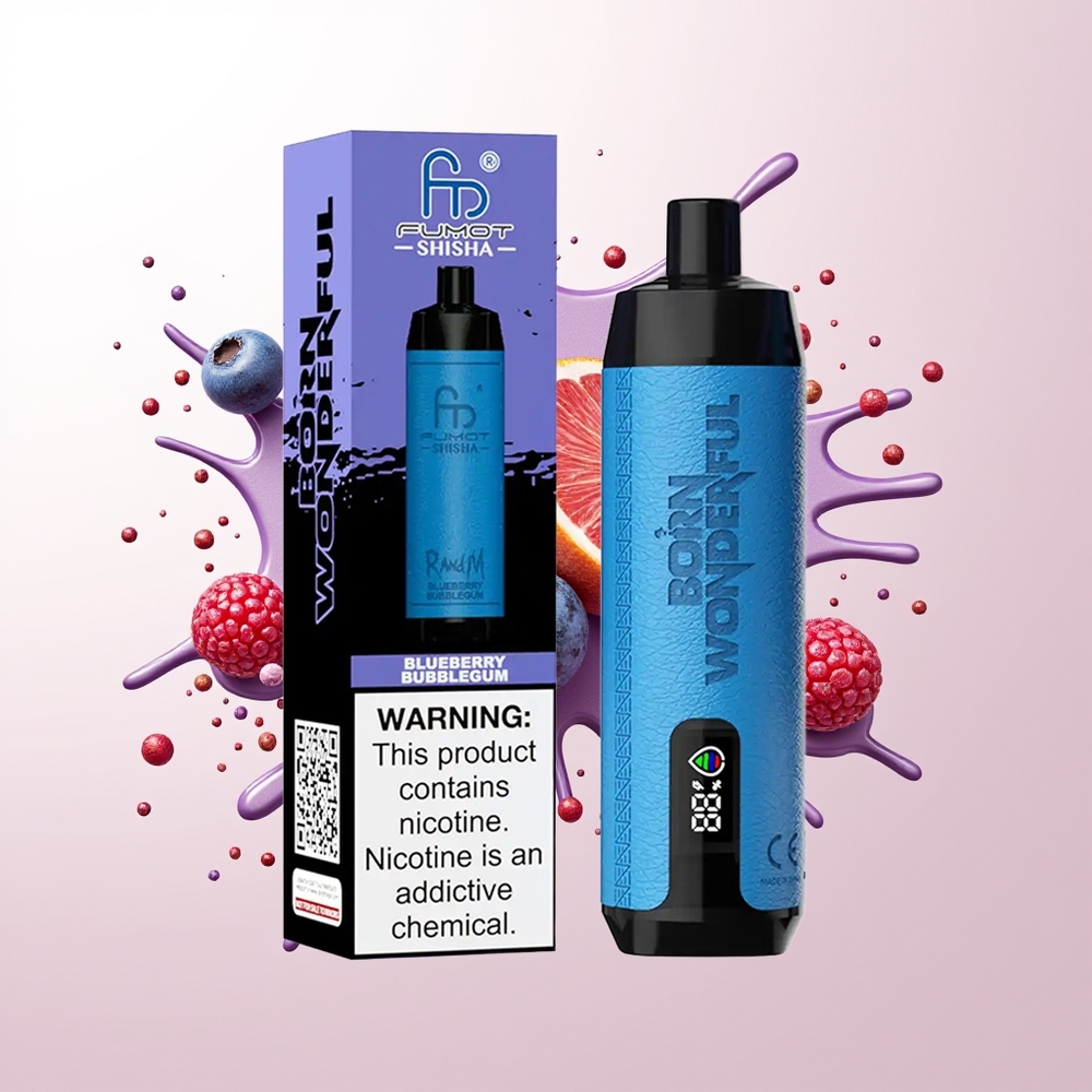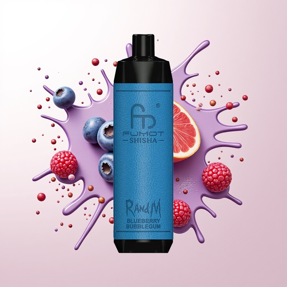 RandM Fumot Shisha 10000 Puffs Blueberry Bubblegum Disposable Vape with LED Indicator 18ml 850mAh Type-C 0.6ohm Mesh 0.5% Nicotine