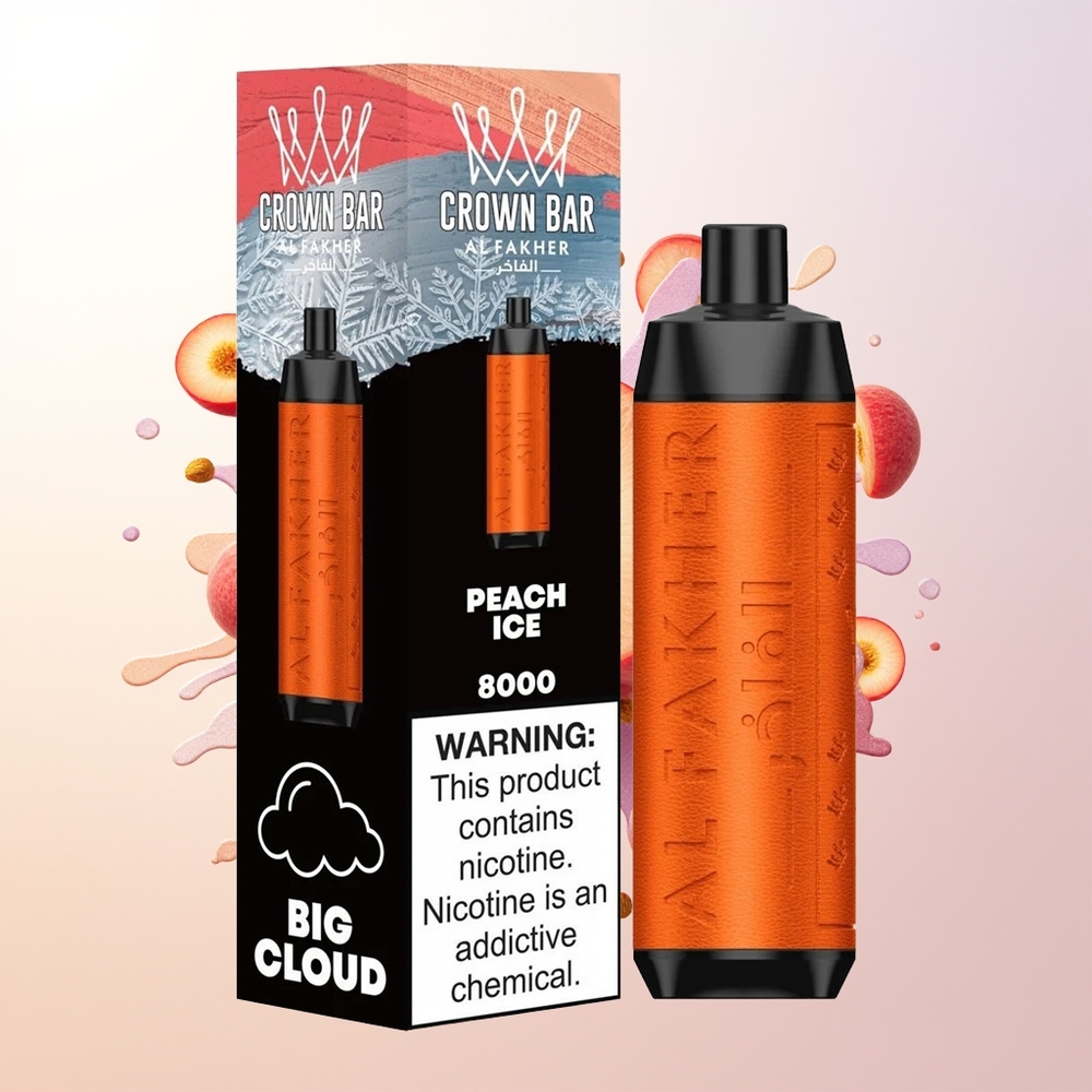 Al Fakher Crown Bar 8000 Crystal Peach Ice Disposable Vape 18ml 5mg 600mAh USB-C 0.6ohm