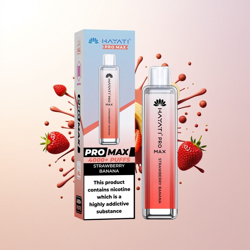 Hayati Pro Max 4000 Puffs Strawberry Banana 5% 1400mAh Rechargeable Dual Mesh Coil