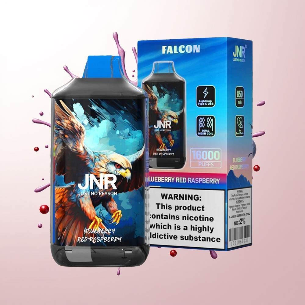 JNR Falcon 16000 Puffs Dual Mesh 22ml 850mAh Blueberry Red Raspberry Type C LED 0% 2%