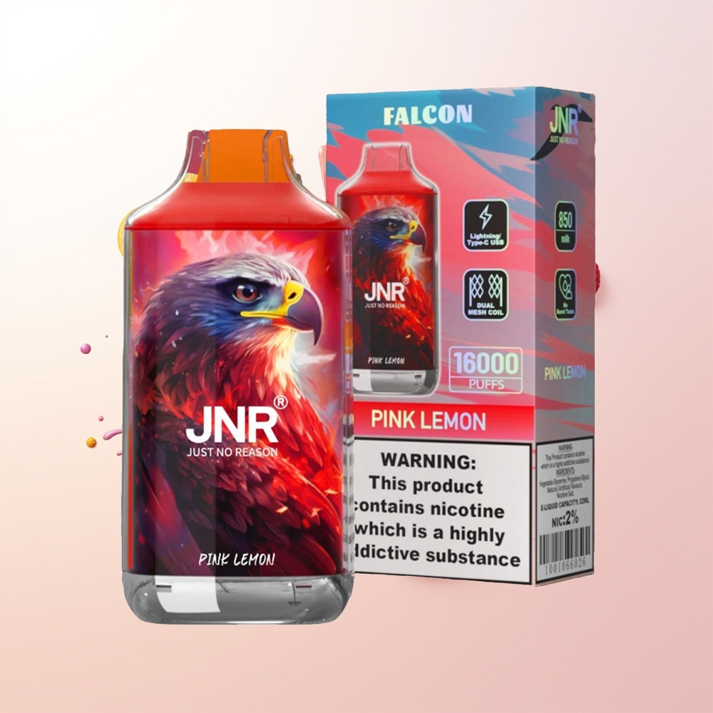 JNR Falcon 16000 Puffs Pink Lemon Dual Mesh 22ml Type C LED 0%2%