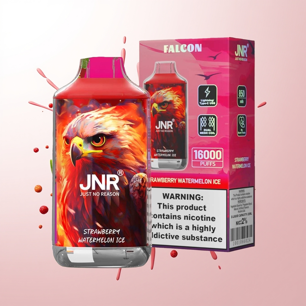 JNR Falcon 16000 Puffs Strawberry Watermelon Ice 850mAh 22ml Dual Mesh Coil Type C Lightning Smart LED 0%2%