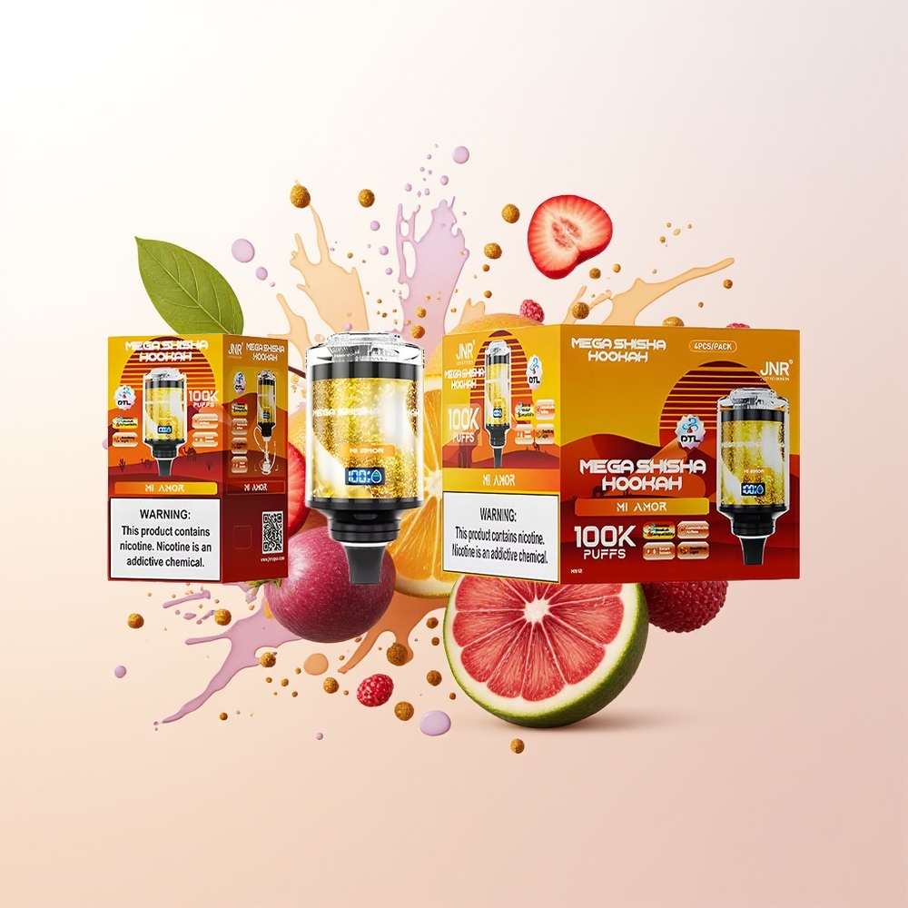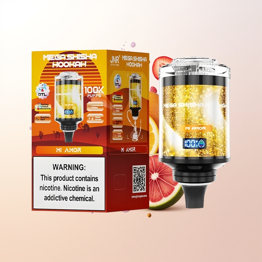JNR Mega Shisha Hookah 100K Mi Amor Desktop Hookah 70.2x270x143.2mm 60mL 2200mAh Type-C 2% Nicotine