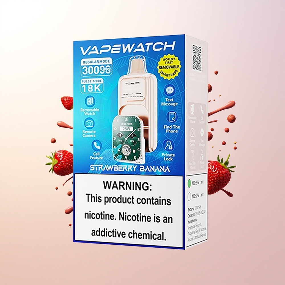 JNR VapeWatch 30000 Puffs Strawberry Banana Dual Mesh 19mL 5% Type-C