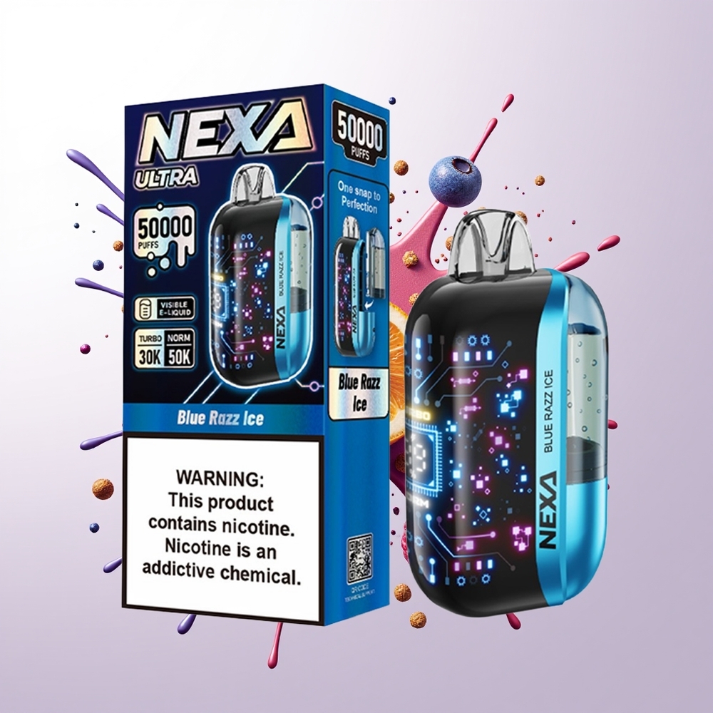 NEXA Ultra 50000 Puffs Blue Razz Ice Disposable Vape with 20ml Prefilled, 800mAh Battery, 5% Nicotine, 0.9ohm Dual Mesh Coils, Type-C Charging & 3D Curved Screen