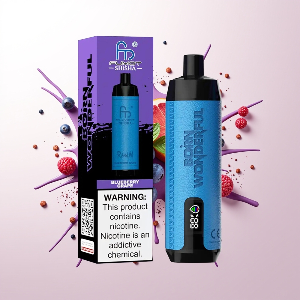 RandM Fumot Shisha 10000 Puffs Blueberry Grape Disposable Vape with LED Indicator 18ml 850mAh Type-C 0.6ohm Mesh 0.5% Nicotine