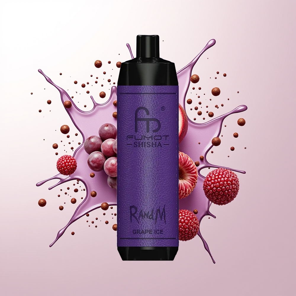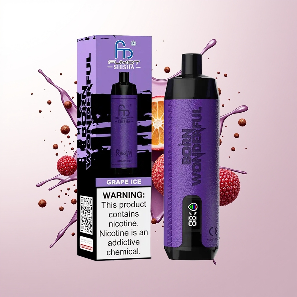 RandM Fumot Shisha 10000 Puffs Grape Ice Disposable Vape with LED Indicator 18ml 850mAh Type-C 0.6ohm Mesh 0.5% Nicotine