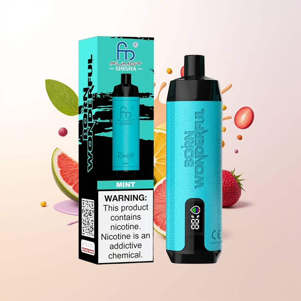RandM Fumot Shisha 10000 Puffs Mint Disposable Vape with LED Indicator 18ml Type-C 850mAh Mesh Coil 0.5% Nicotine