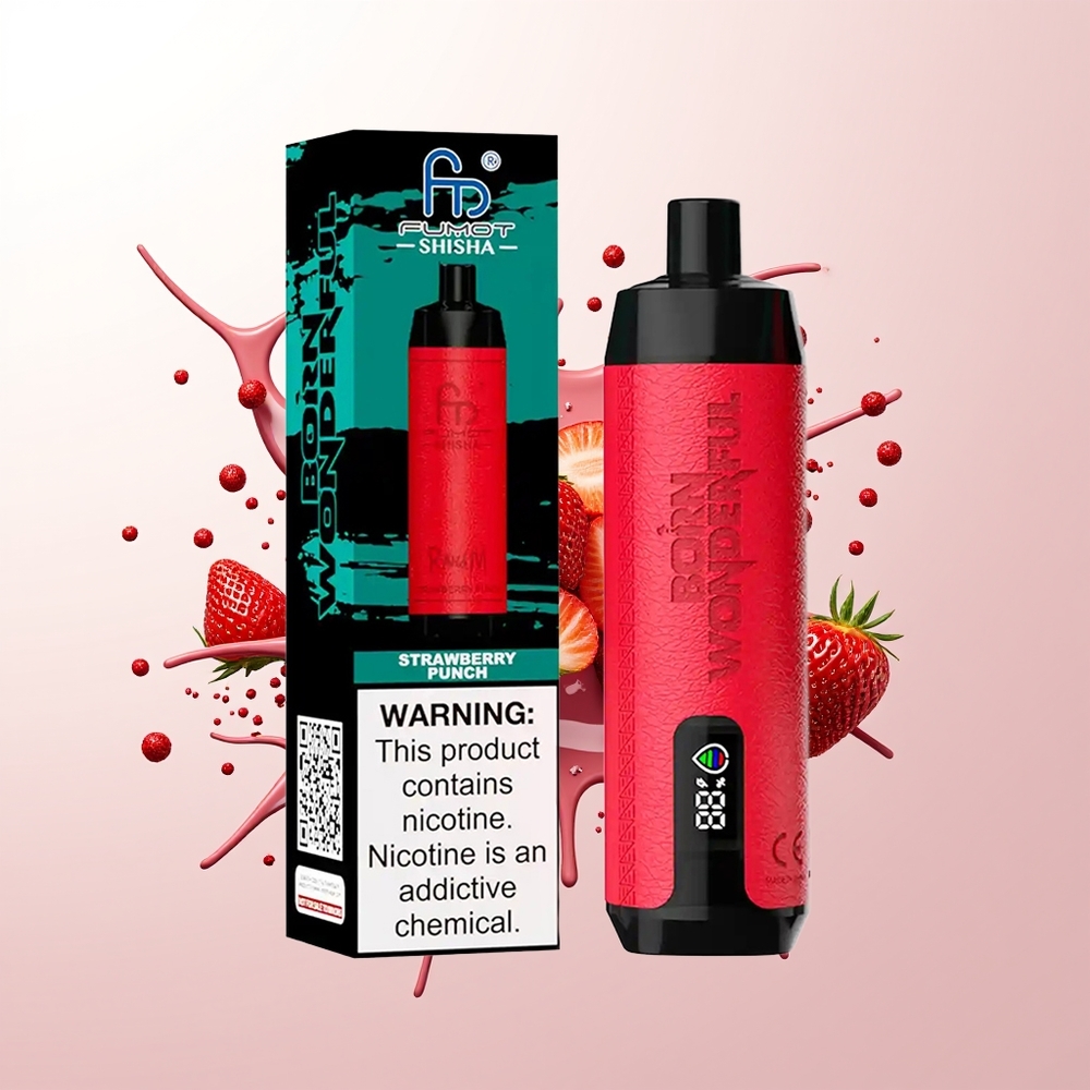 RandM Fumot Shisha 10000 Puffs Strawberry Punch LED Mesh 18mL 850mAh Type-C 0.5% Nicotine
