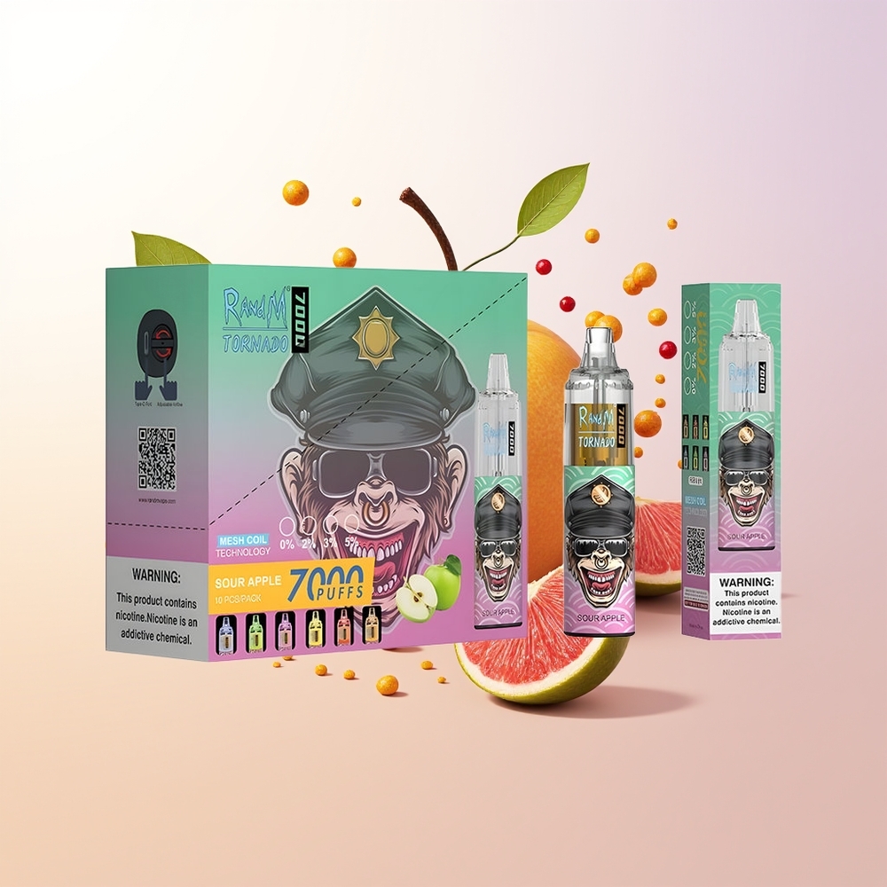 RandM Fumot Tornado 7000 Puffs Sour Apple 14ML Mesh Coil Type-C RGB Air-Adjustable
