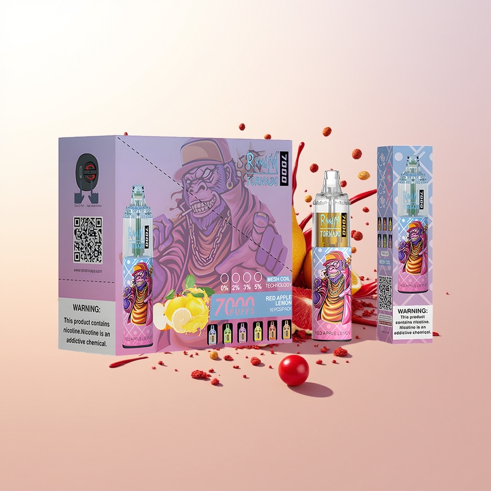 RandM Fumot Tornado 7000 Red Apple Lemon 14ML Mesh Coil Type-C RGB Air-Adjustable