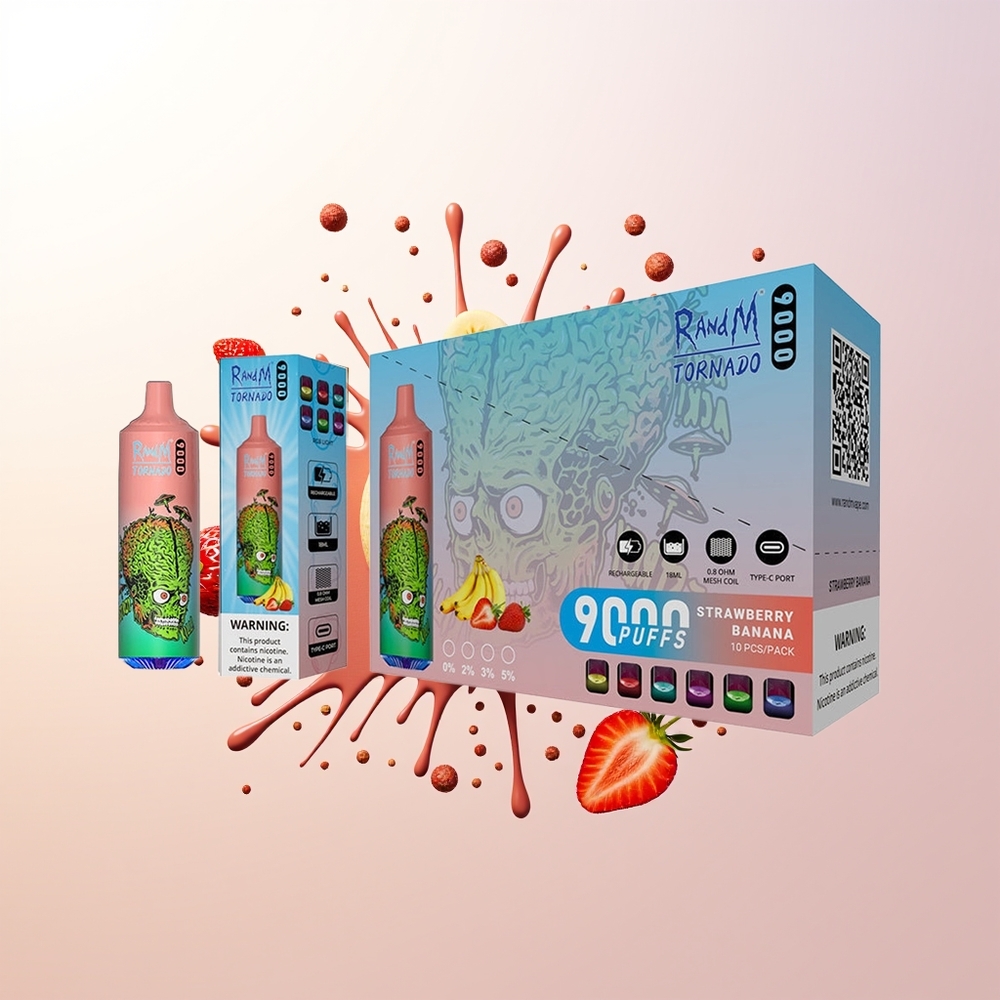 RandM Fumot Tornado 9000 Puffs Strawberry Banana Rechargeable RGB Mesh