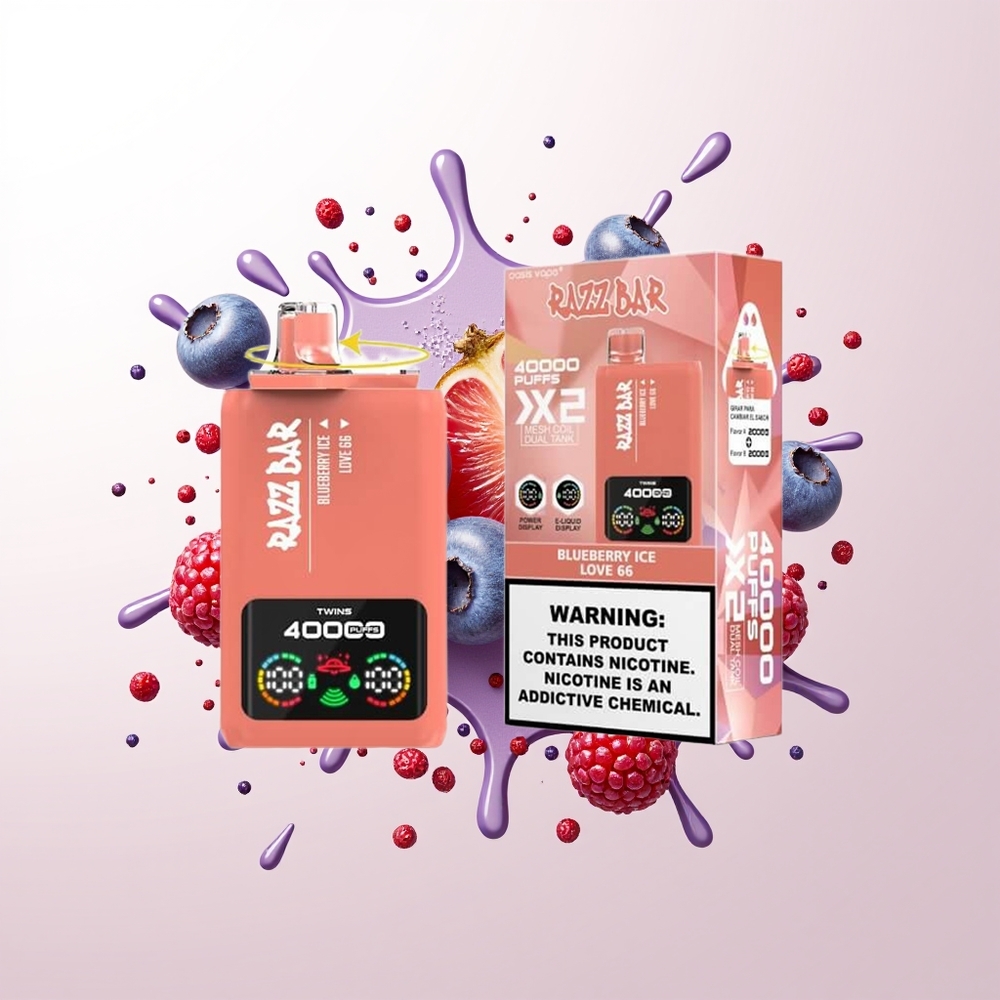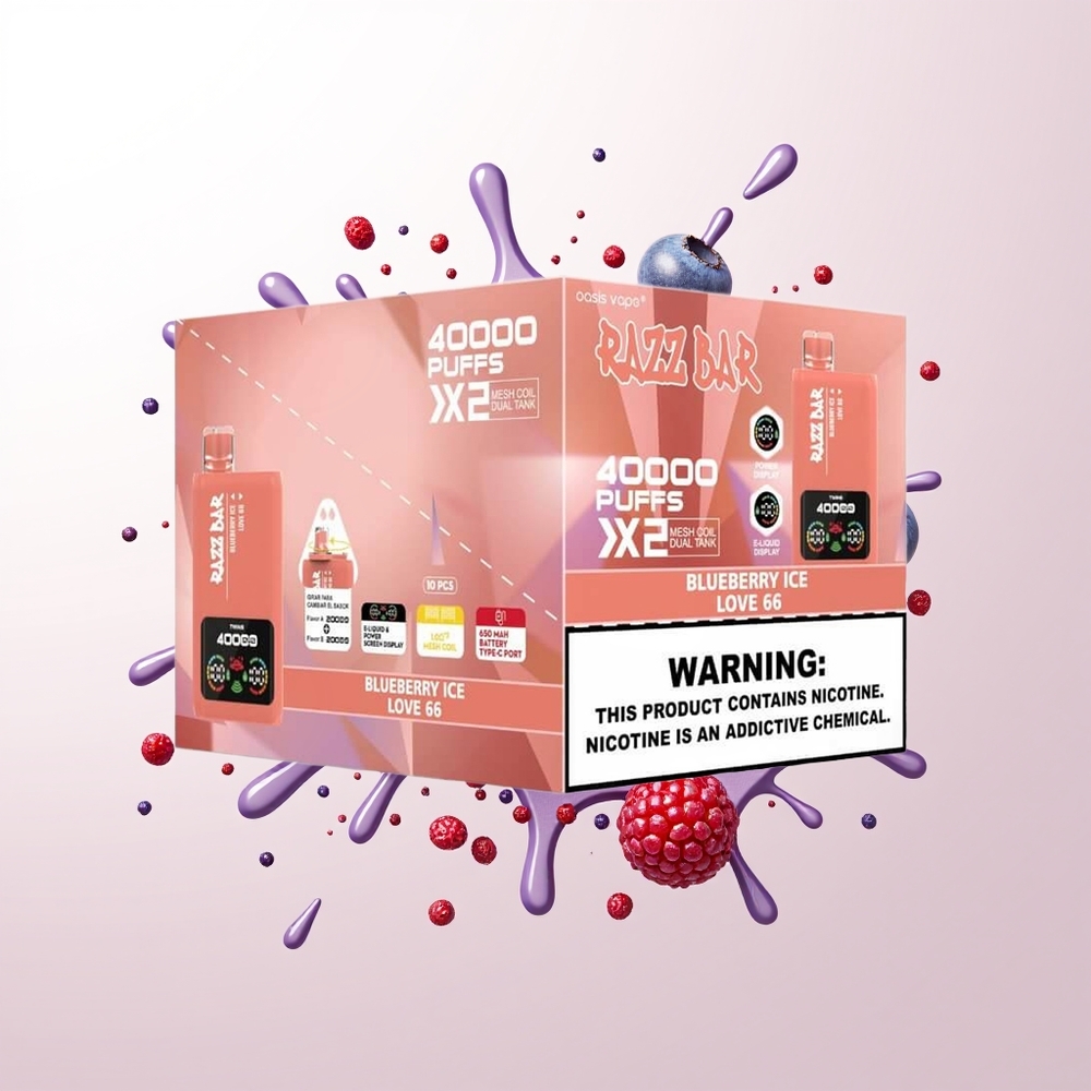 Razz Bar 40000 Puffs Blueberry Ice Power Screen Mesh Coil Type-C Love 66
