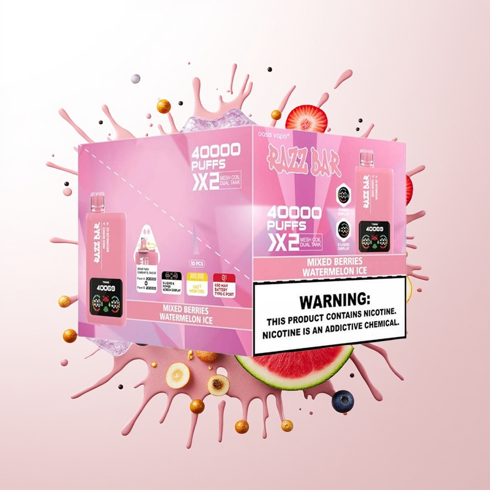 Razz Bar 40000 Puffs Disposable Vape Mixed Berries – Watermelon Ice with Power Screen Display 1.0Ohm 2 Mesh Coil 650mAh Battery Type-C Port 2%5% Nicotine