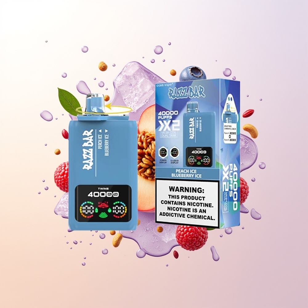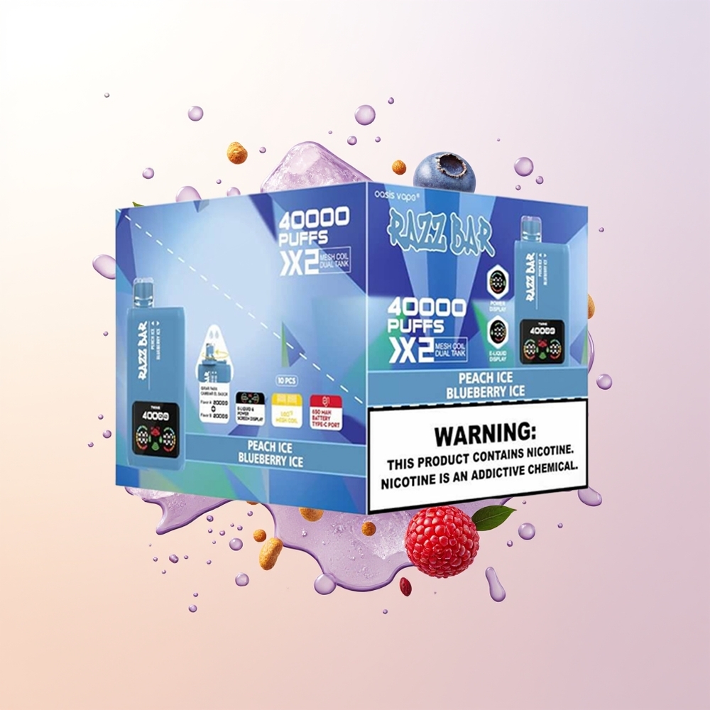 Razz Bar 40000 Puffs Peach Ice Blueberry Ice Power Screen Mesh Coil Type-C 650mAh 2% 5% Nicotine
